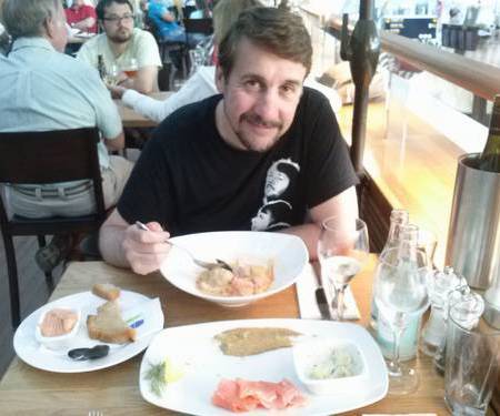 una caldereta de marisco y salmón y un plato de salmón ahumado con patatas parisinas en salsa. Realmente delicioso. Nos pedimos una botella