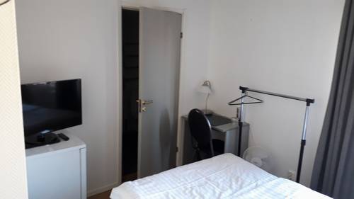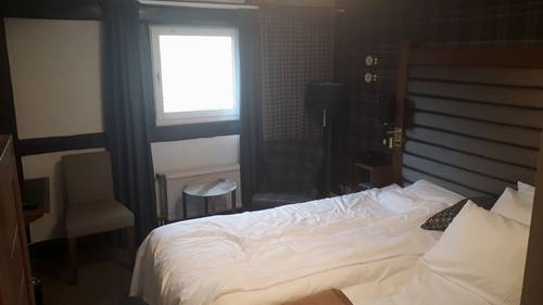 he dit que no, que parlés en suec però més a poc a poc. I ens hem entès la mar de bé. L’habitació és minúscula, un llit de 135, una nevereta amb la